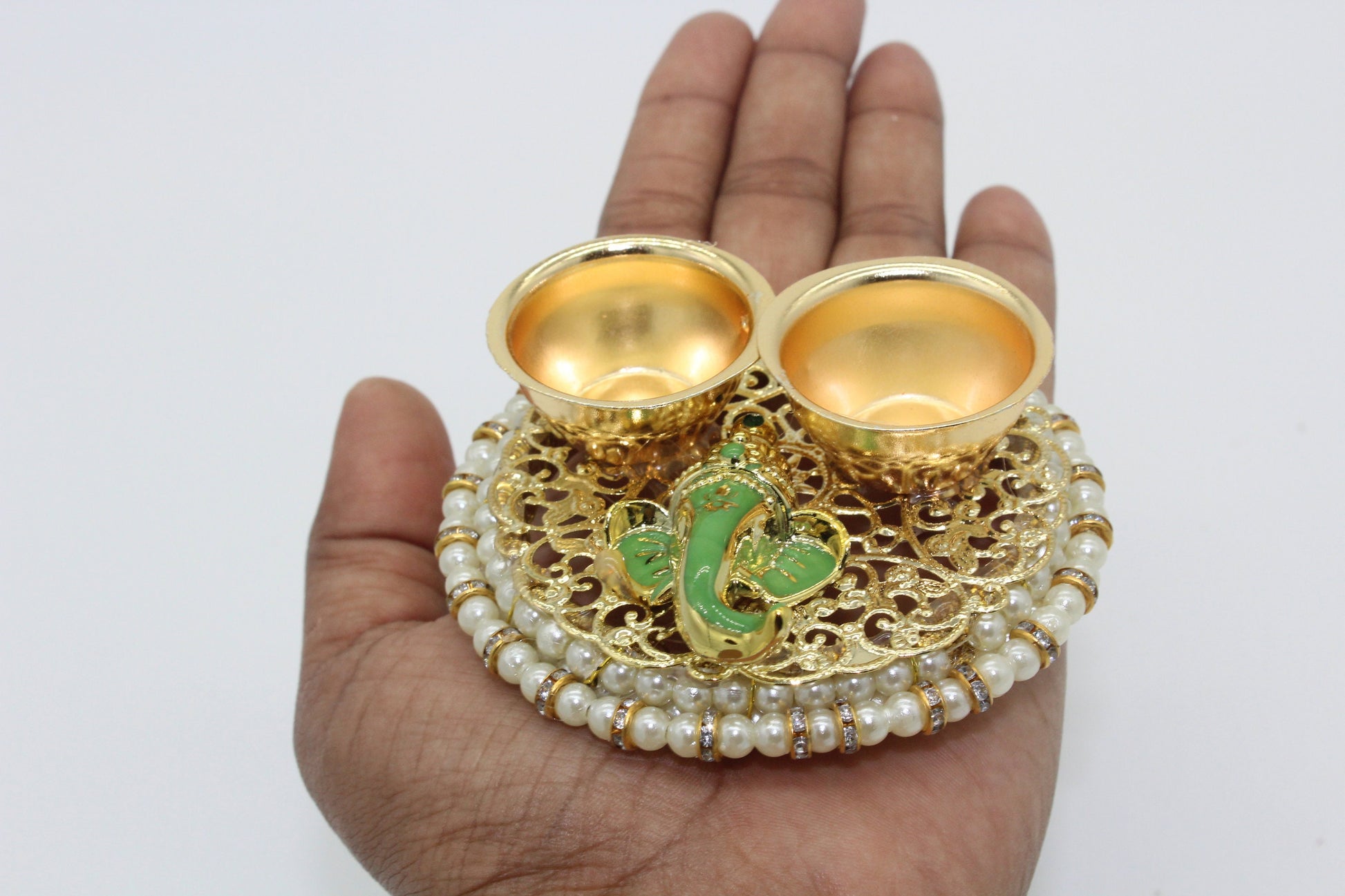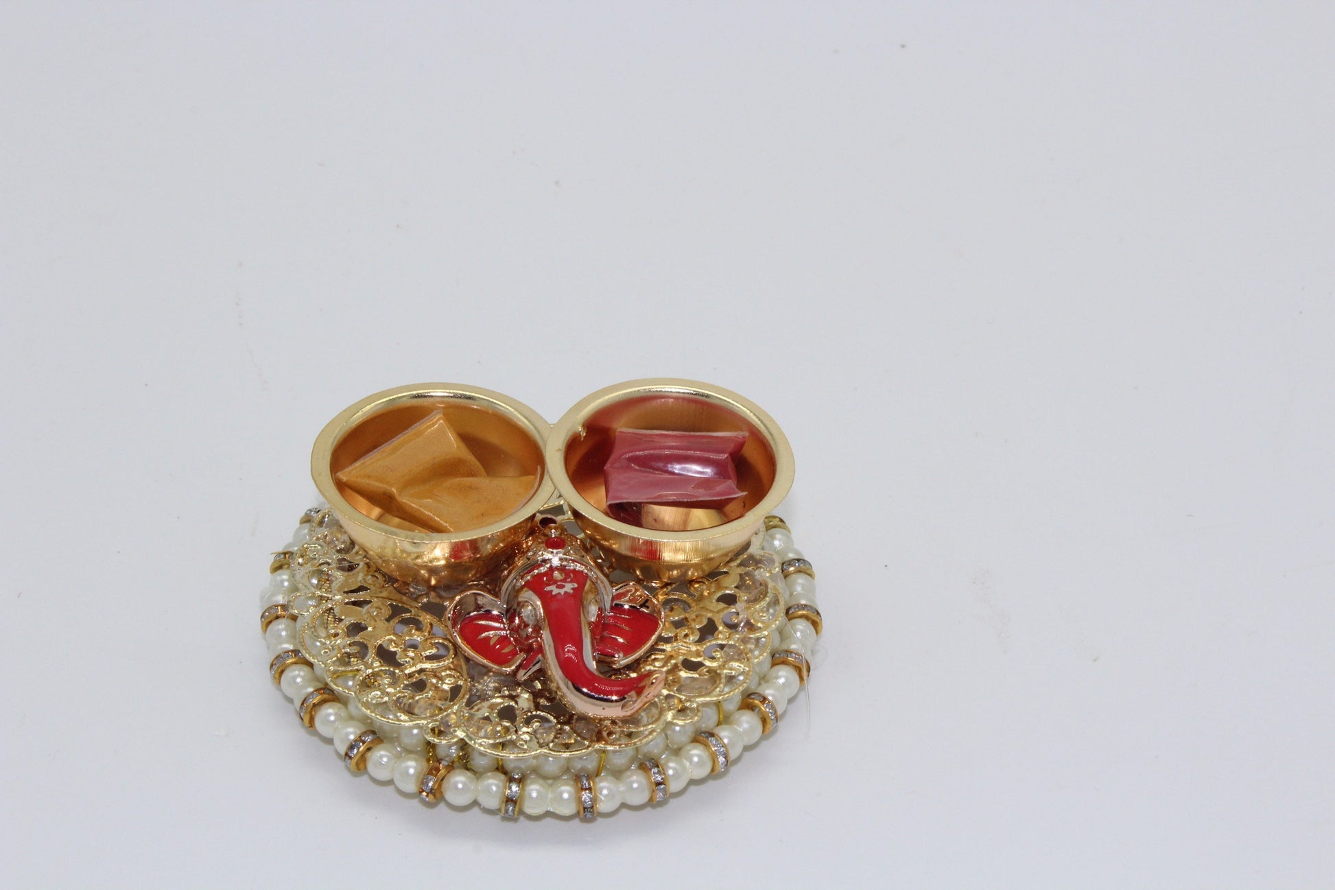 - On every indian festival occasions haldi kumkum platter is needed to perform pooja ritual and this unique platter is combined with graceful lord ganesha idol